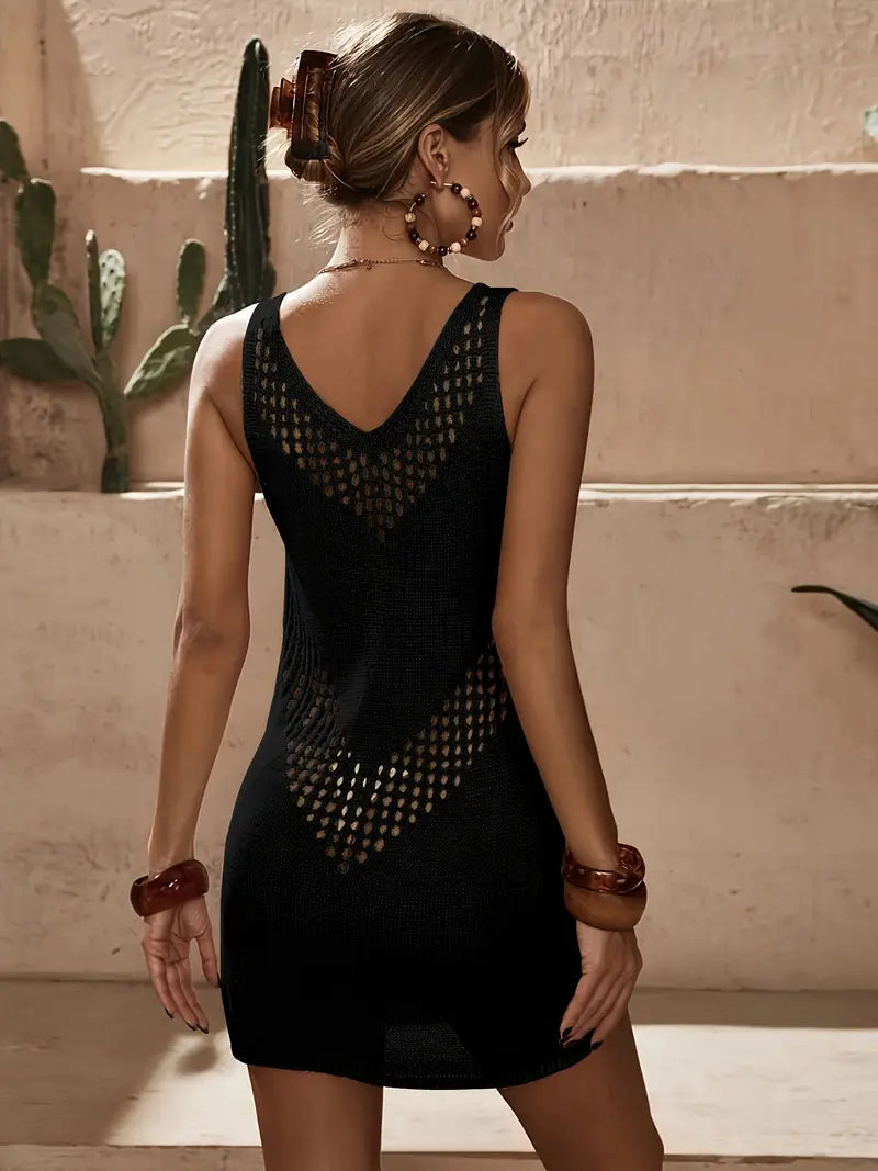 A sheer, wrap-style cover-up made for shoreline strolls and sunlit lounging. With cut-out accents and a sleeveless V-neck shape, this piece offers an airy layer over swimwear.