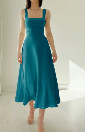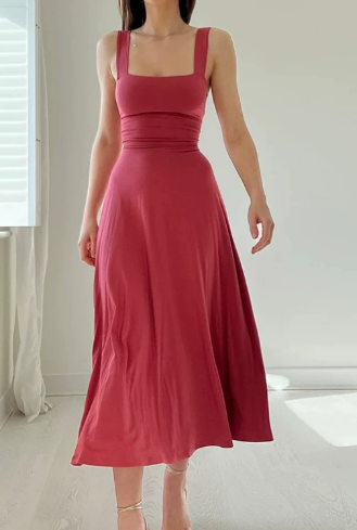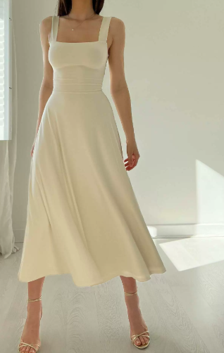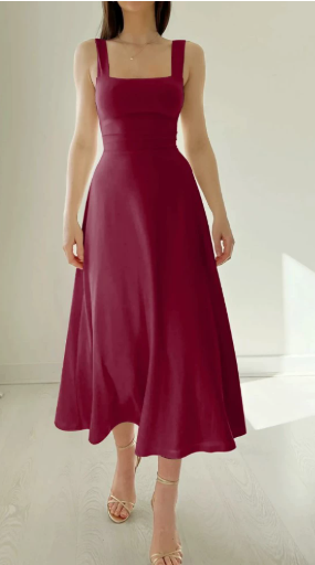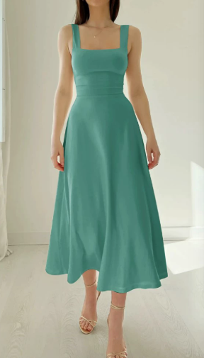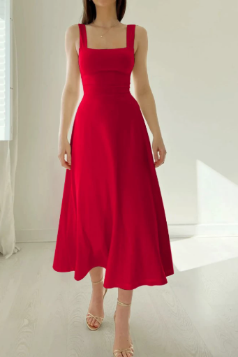 Designed with clean lines and a smooth silhouette, this sleeveless midi dress brings effortless elegance to everyday moments and special occasions alike.