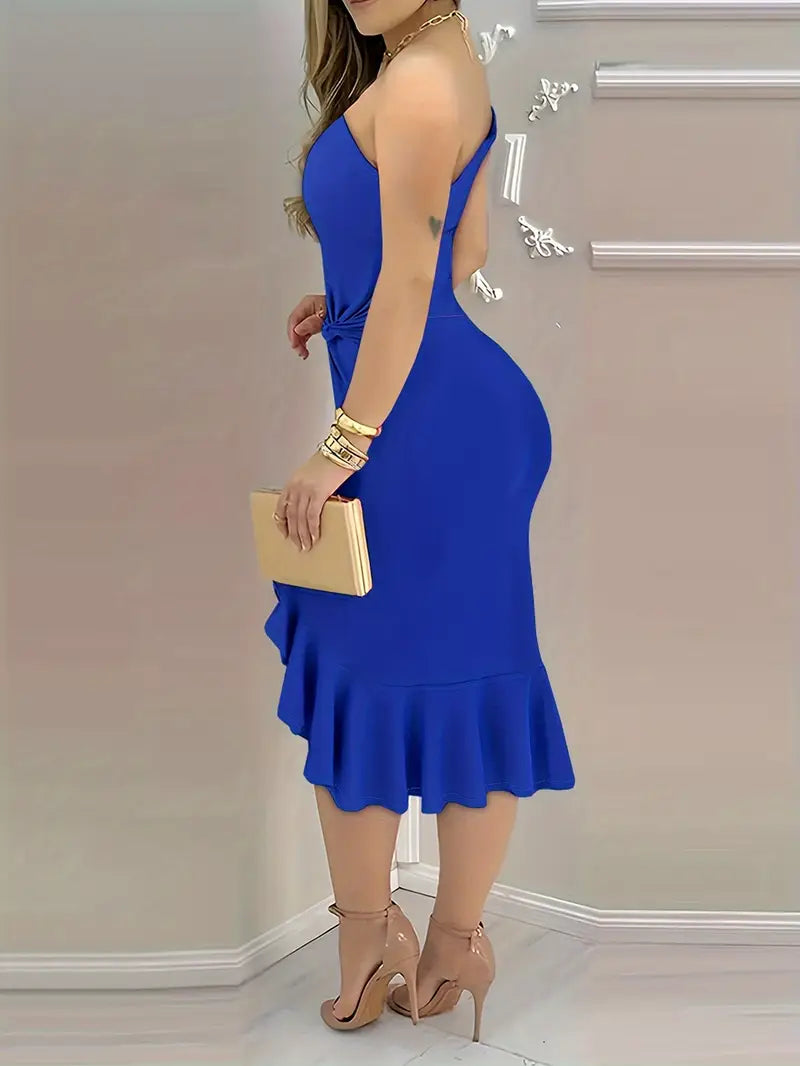 Luna’s Radiant Allure Ruffle Hem One-Shoulder Dress