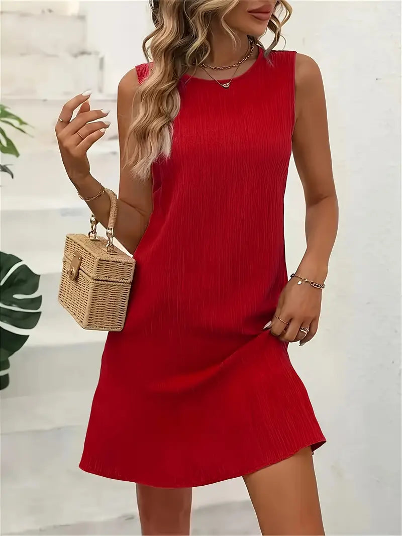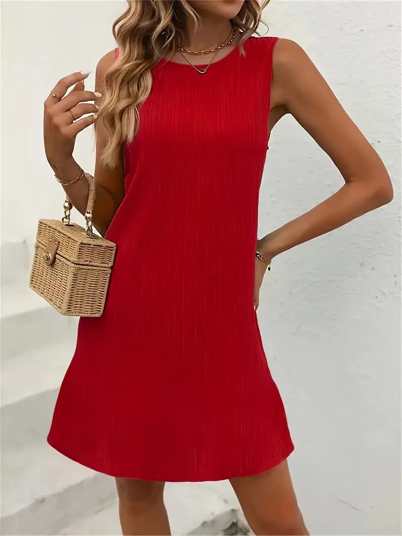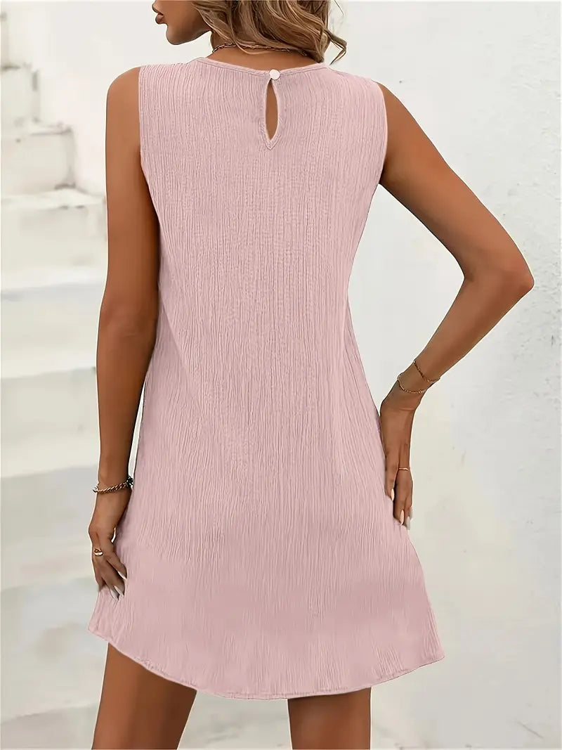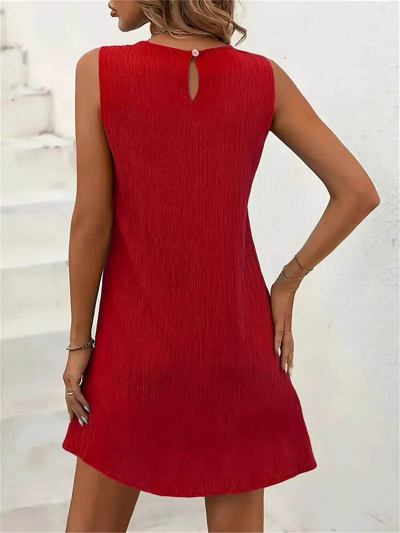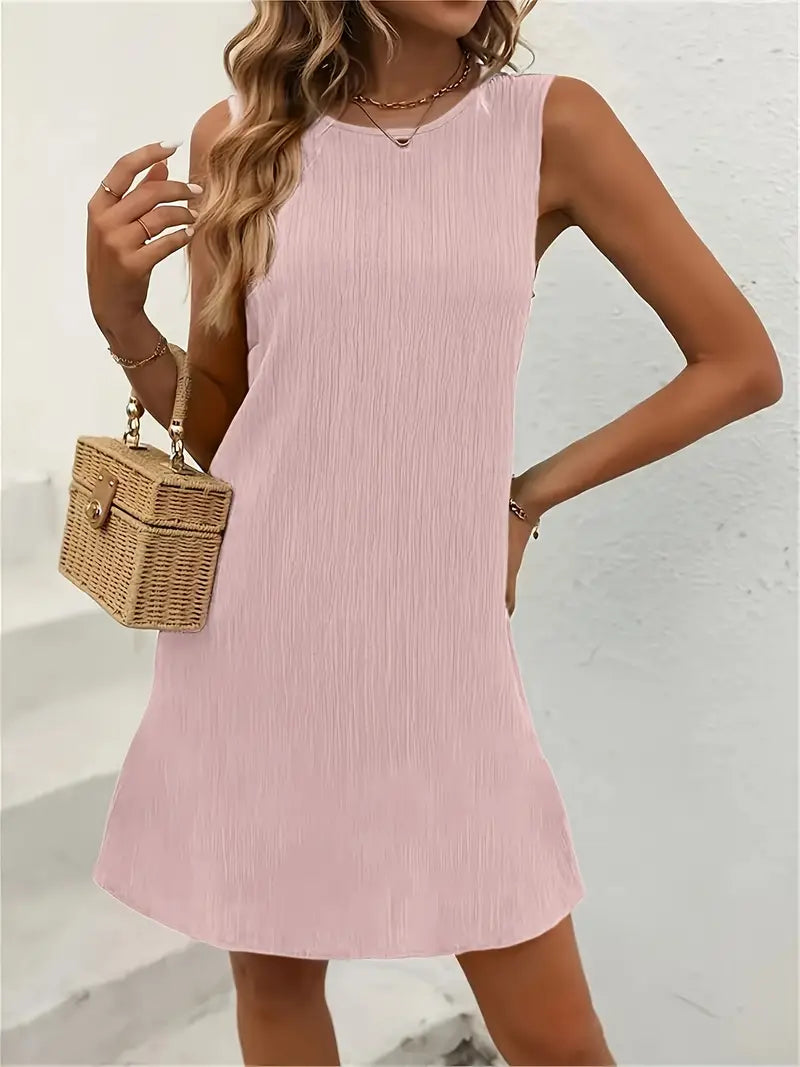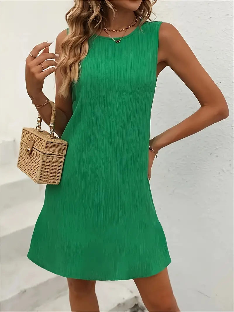 This sleeveless A-line dress offers a clean, flowing silhouette with subtle structure. Designed for everyday ease, it balances softness with polish.