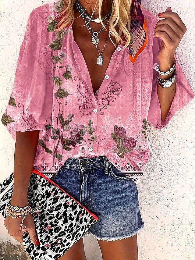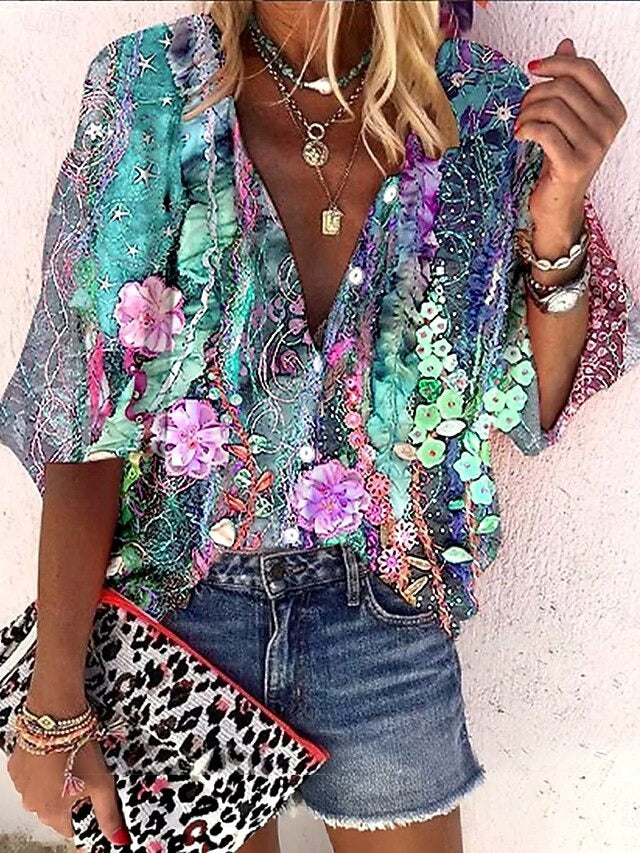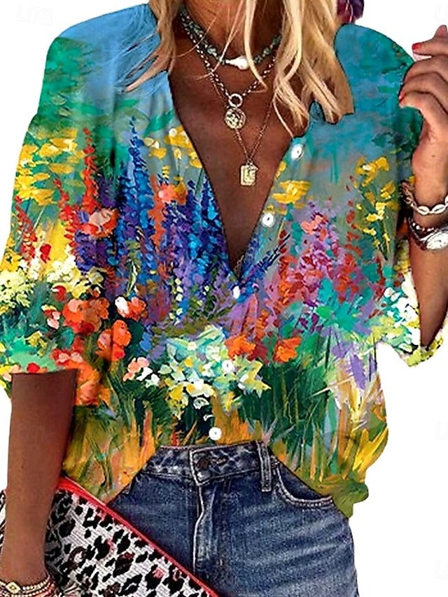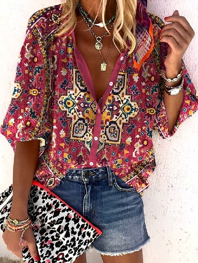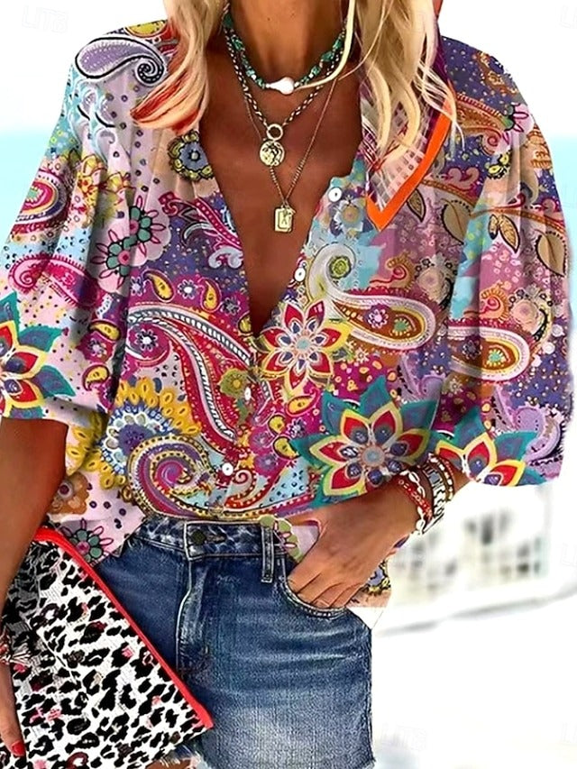 A relaxed silhouette with flowing lines and soft ombre tones. This top blends bold print with easy movement for effortless everyday wear.