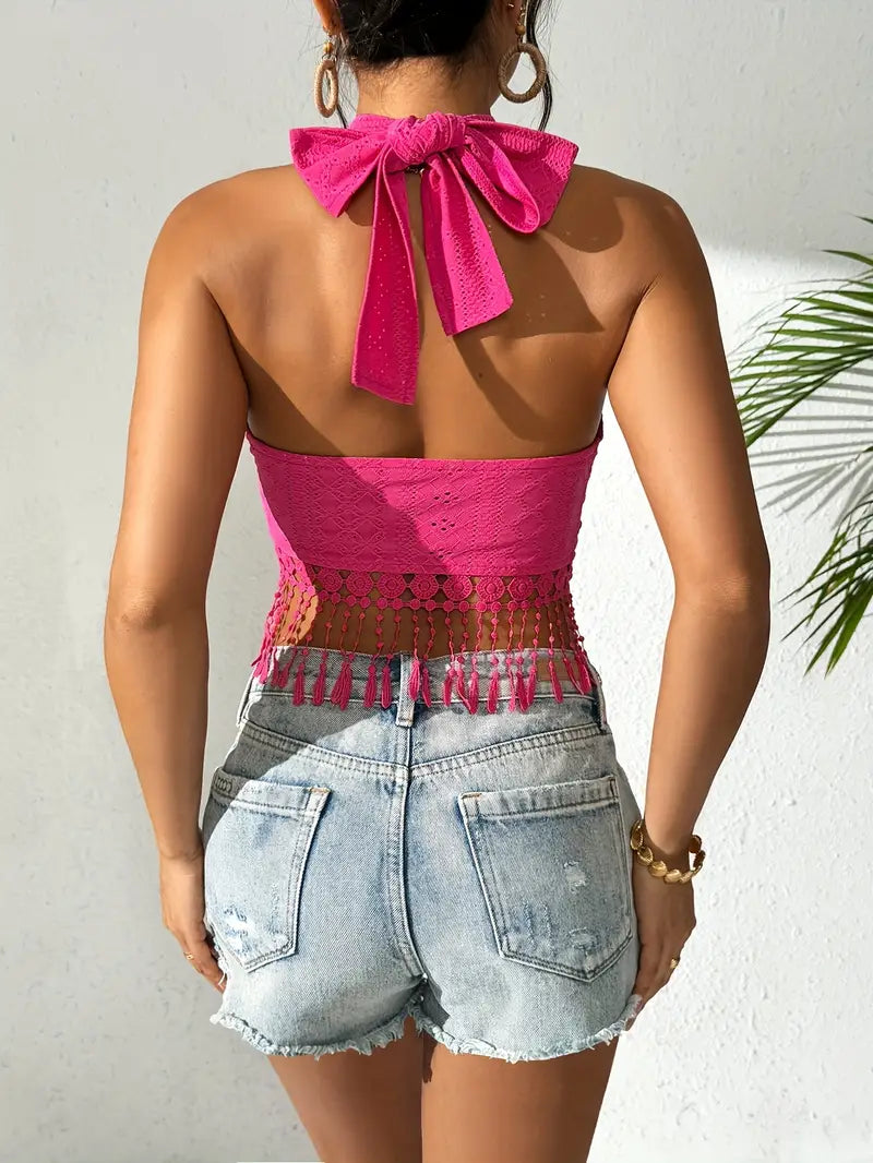 Luna’s Boho Breeze Beaded Hem Halter Top