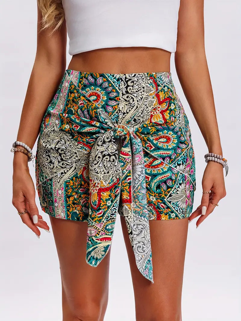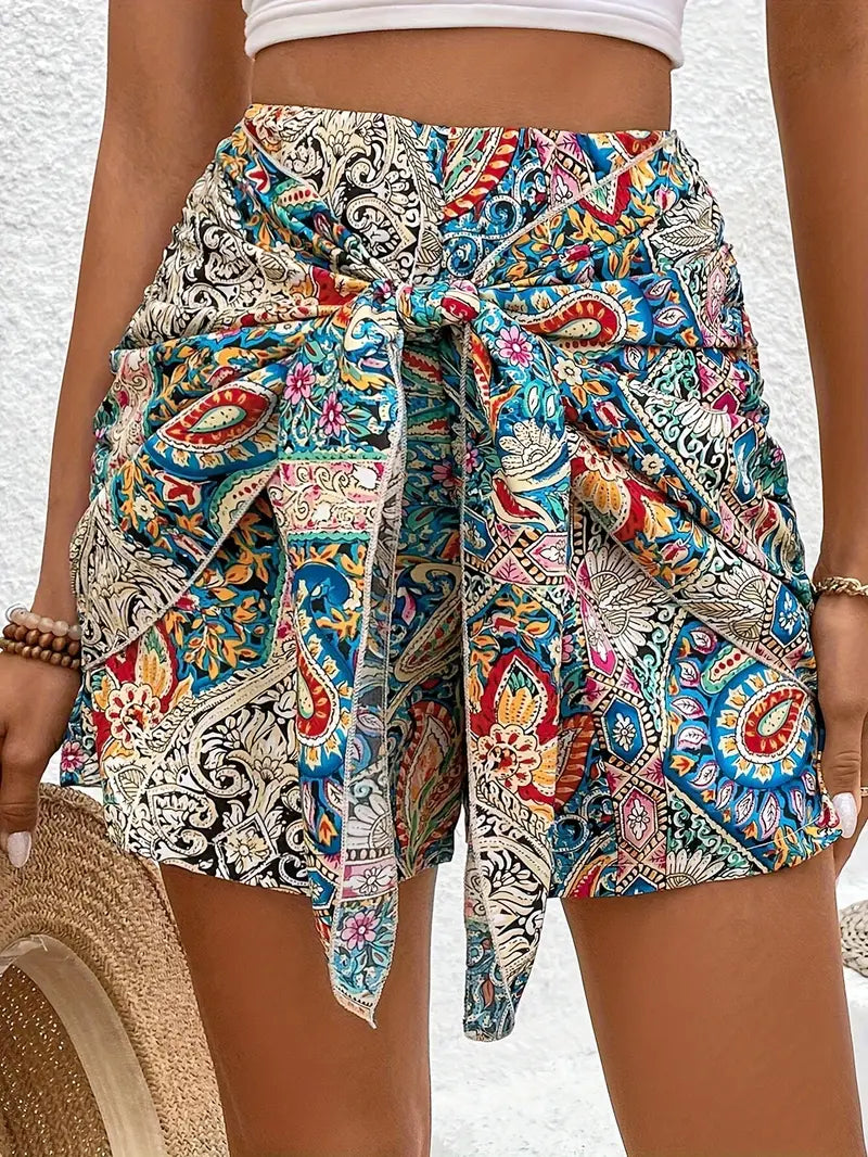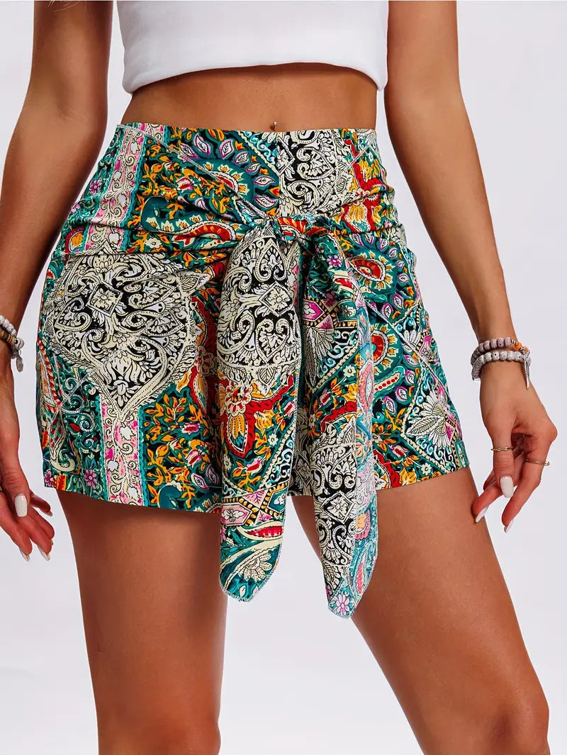 These high-waist shorts bring a touch of boho flair with their knot-front detail and flowing print. Easy to style, they balance relaxed charm with a polished look.