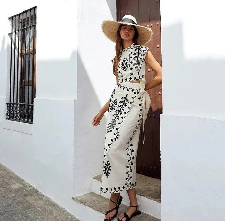 Luna’s Mediterranean Charm Embroidered Two-Piece Set